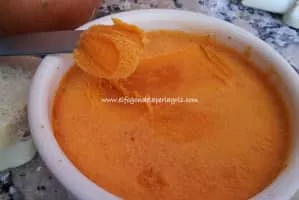 Manteca colorá is a food item prepared by adding spices and paprika – which is what gives the dish its characteristic orange colour – to lard, which is then cooked with minced or finely chopped pieces of pork. It is a dish typical of Andalusia in southern Spain, where it is usually consumed spread on toasted bread.