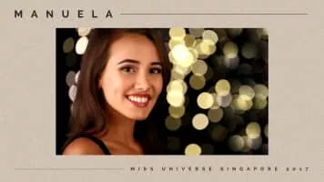 Manuela Bruntraeger is a Singaporean model, TV host and beauty pageant title-holder who was crowned as Miss Singapore Universe 2017 and represented Singapore at Miss Universe 2017 pageant in Las Vegas.