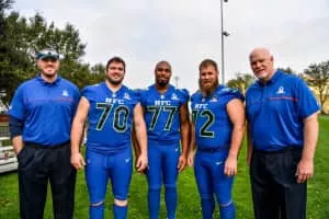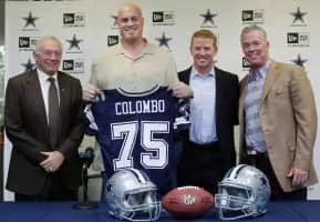 Marc Edward Colombo is a former American football offensive tackle who played for eleven seasons in the National Football League for the Chicago Bears, Dallas Cowboys and Miami Dolphins. He played college football at Boston College. He is the current offensive line coach for the Cowboys.