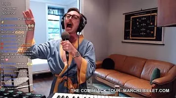 Marc Rebillet is an American electronic musician and YouTuber from Dallas, Texas, currently based in New York City. He is known for improvising electronic songs that feature comical lyrics.