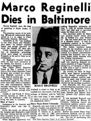 Marco Reginelli, also known as "Small Man", was an Italian-American New Jersey mobster who became underboss of the Philadelphia crime family and operated a famous nightclub in Atlantic City, New Jersey. Reginelli's nickname came from his short stature.