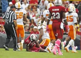 Marcus Lattimore is a former American football running back. He played college football at South Carolina, where he holds the career record for rushing touchdowns. He rushed for 1,197 yards as a starter during his freshman year. His sophomore and junior years were truncated by severe knee injuries.