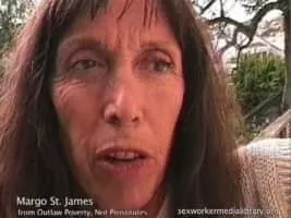 Margaret Jean "Margo" St. James was an American prostitute and sex-positive feminist. In San Francisco, she founded COYOTE, an organization advocating decriminalization of prostitution, and co-founded the St. James Infirmary Clinic, a medical and social service organization serving sex workers in the Tenderloin.