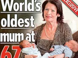 María del Carmen Bousada de Lara was a Spanish woman who gained worldwide attention when at the age of 66, she became the world's oldest mother on December 29 or 30, 2006 when she gave birth to twins. She later became an outspoken advocate for the rights of older mothers and a subject of considerable controversy.