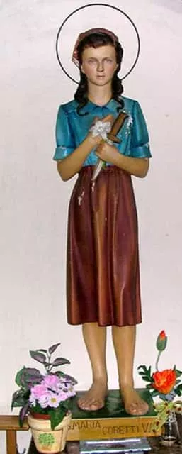 Maria Teresa Goretti is an Italian virgin martyr of the Catholic Church, and one of the youngest saints to be canonized. She was born to a farming family. Her father died when she was nine, and the family had to share a house with another family, the Serenellis.