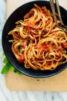 Marinara sauce is a tomato sauce, usually made with tomatoes, garlic, herbs, and onions. Its many variations can include the addition of capers, olives, spices, and a dash of wine. This sauce is widely used in Italian-American cuisine, which has diverged from its Old World origins.