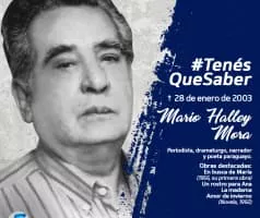 Mario Halley Mora was born on September 25, 1920 in Coronel Oviedo, Caaguazu, Paraguay. Mario was a writer, known for La sangre y la semilla (1959) and Magdalena de la calle (1980). Mario died on January 28, 2003 in Asunción, Paraguay.