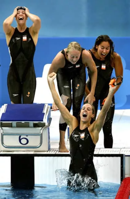 Magdalena Johanna Maria "Marleen" Veldhuis is a retired swimmer from the Netherlands. She was world record holder in four events. Veldhuis won eight world championships gold medals and 20 European championships gold medals.