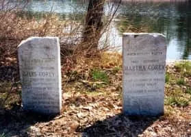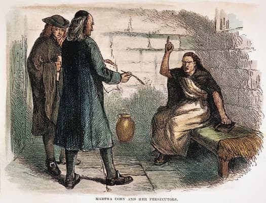 Martha Corey was accused and convicted of witchcraft during the Salem witch trials, on September 9, 1692, and was hanged on September 22, 1692. Her second husband, Giles Corey, was also accused and killed.