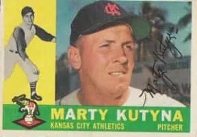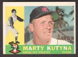 Marion John "Marty" Kutyna is an American former right-handed pitcher in professional baseball. Kutyna spent three full seasons in Major League Baseball, pitching almost exclusively in relief. He stood 6 feet tall, weighed 190 pounds, and batted right-handed.