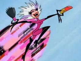 Mask Scara (voiced by and modeled after the late Phyllis Diller) is the villain that appeared in the episode "A Made Up Story". She is very thin, crazy, and a villain that puts irremovable trashy make up on everyone and everything and tells bad jokes.