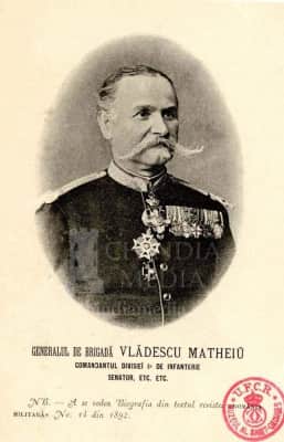 Matei Vlădescu was a Wallachian-born Romanian soldier. Born in Târgoviște, Dâmbovița County, he entered the Bucharest Military School for Officers in 1854, becoming a second lieutenant in 1856. He rose to lieutenant, captain, major, lieutenant-colonel, colonel, brigadier general, and major general.