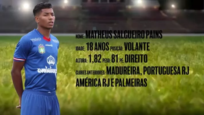 Full name: Matheus Salgueiro Pains Date of birth: Aug 27, 1999 Place of birth: Rio de Janeiro Age: 23 Height: 1,82 m Citizenship: Brazil Position: midfield - Defensive Midfield Foot: right Player agent: JC SOCCER Current club: Vitória Guimarães SC Joined: Jul 1, 2022 Contract expires: Jun 30, 2025.