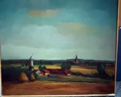 Maurice Haccuria was a Belgian artist, born in Jeuk in 1919 and died in Leuven in 1991. He was a painter, engraver and sculptor. He was self-taught, painting mainly animistic landscapes from 1943.