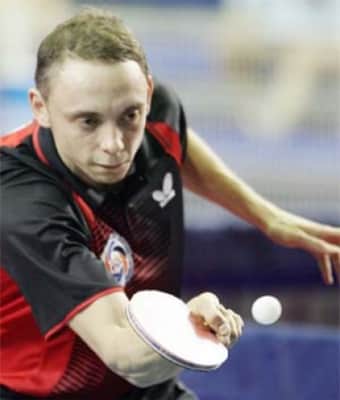 Maxim Shmyrev is a male table tennis player from Moscow, Russia. He is a multiple Russian National Champion in table tennis, winning Men Singles title five times. He is also a three-times world champion of ping-pong, having won the first three world championships in that discipline, from 2011 to 2014.