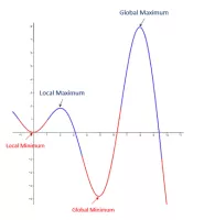 In mathematical analysis, the maxima and minima of a function, known collectively as extrema, are the largest and smallest value of the function, either within a given range or on the entire domain of a function.