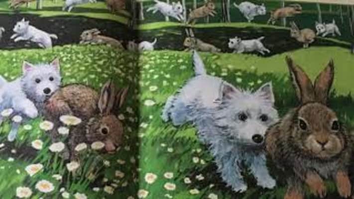 McDuff the little white dog gets lost while chasing a bunny and needs help finding his way home.