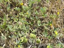 Medicago truncatula, the barrelclover, strong-spined medick, barrel medic, or barrel medick, is a small annual legume native to the Mediterranean region that is used in genomic research. It is a low-growing, clover-like plant 10–60 centimetres tall with trifoliate leaves.