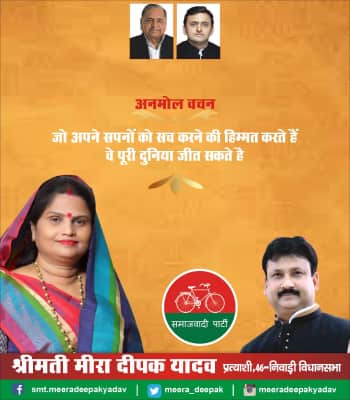 Meera Deepak Yadav is a former Member of the Legislative Assembly of Niwari, India. She represented the Niwari constituency of Madhya Pradesh and she is a member of the Samajwadi Party political party.