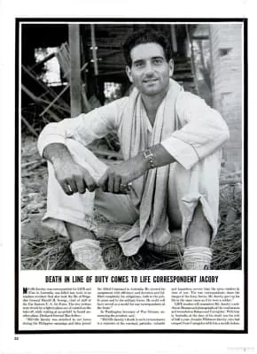 Melville Jacoby was the first War Correspondent to die in WWII. Mrs. Annalee Jacoby, widow of Mel Jacoby, visited General Douglas MacArthur in his office in General Headquarters, Southwest Pacific Area in Melbourne on Monday 8 June 1942. at 1515. Annalee married Clifton Fadiman in 1950.