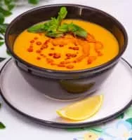 Lentil soup is a soup based on lentils; it may be vegetarian or include meat, and may use brown, red, yellow or black lentils, with or without the husk. Dehulled yellow and red lentils disintegrate in cooking, making a thick soup. A staple food throughout the Middle East.