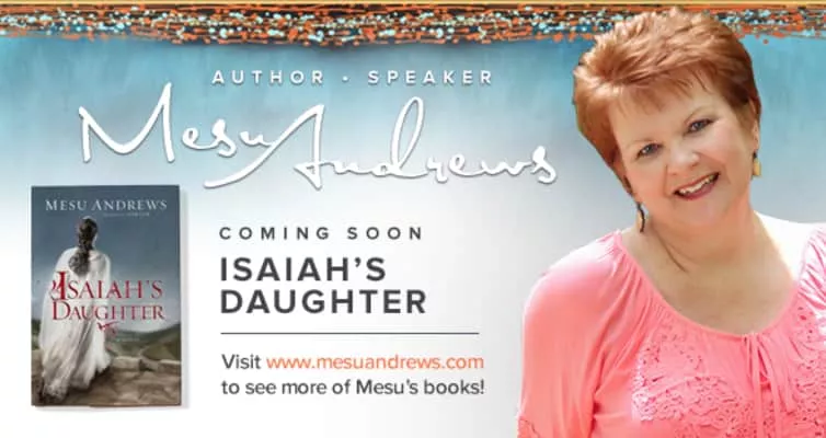 Mesu Andrews is the Christy Award-winning author of Isaiah's Daughter whose deep understanding of and love for God's Word brings the biblical world alive for readers. Andrews lives in North Carolina with her husband Roy. She stays connected with readers through newsy emails, fun blog posts, and frequent short stories.