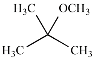 Methyl tert-butyl ether, also known as tert-butyl methyl ether, is an organic compound with a structural formula (CH₃)₃COCH₃. MTBE is a volatile, flammable, and colorless liquid that is sparingly soluble in water. It has a minty smell vaguely reminiscent of diethyl ether, leading to unpleasant taste and odor in water.