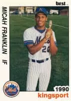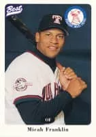 Micah Franklin is an American former professional baseball outfielder. He played part of one season in Major League Baseball with the St. Louis Cardinals in 1997. Franklin also played in Nippon Professional Baseball in Japan during the 1999 and 2000 seasons, and in the Korea Baseball Organization in 2002-03.