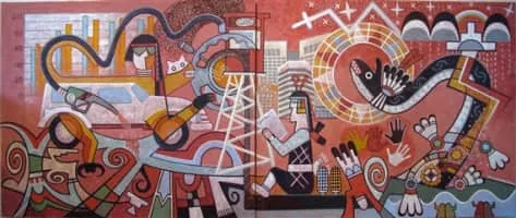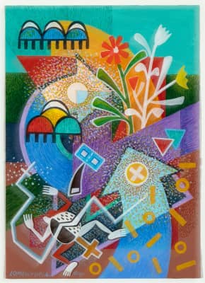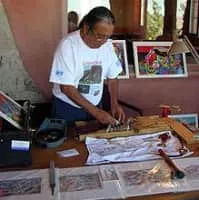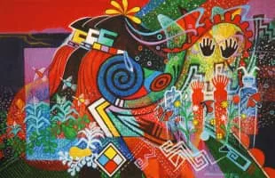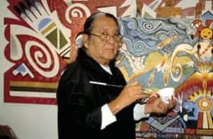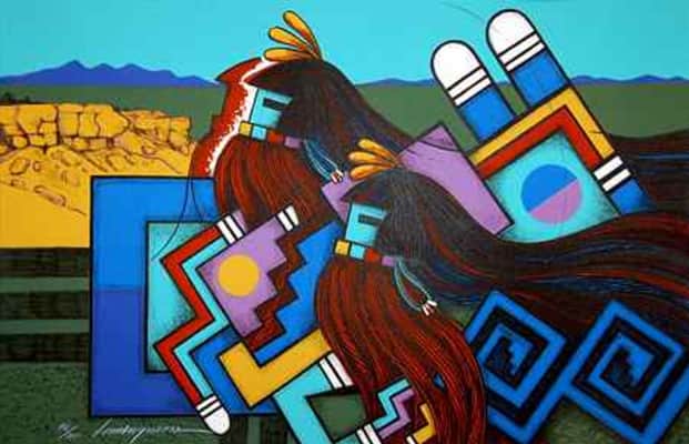 Michael Kabotie, also known as Lomawywesa was a Hopi silversmith, painter, sculptor, and poet. He is known for his petroglyph and geometric imagery.