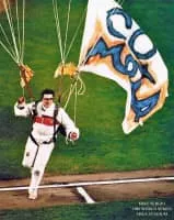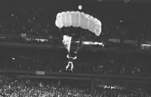 Michael Sergio is an actor who parachuted into Shea Stadium during Game 6 of the 1986 World Series, wearing a sign proclaiming "Go Mets". Immediately arrested, Sergio spent a short time in jail because he would not reveal the name of the pilot who flew him over Queens that evening.