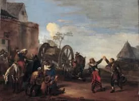 Michelangelo Cerquozzi, known as Michelangelo delle Battaglie was an Italian Baroque painter known for his genre scenes, battle pictures, small religious and mythological works and still lifes.