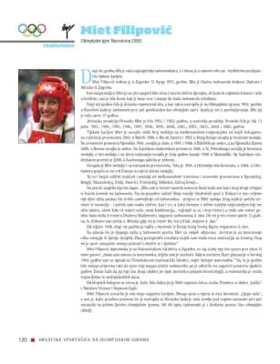 Miet Filipović is a retired Croatian taekwondo practitioner. Her international competitive career spanned from 1992 to 2005. Her greatest success was winning gold at the 2004 European Taekwondo Championships.