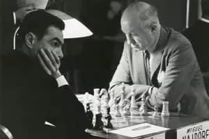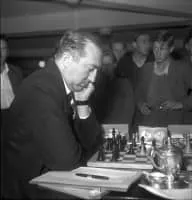Miguel Najdorf was a Polish–Argentinian chess grandmaster. Originally from Poland, he was in Argentina when World War II began in 1939, and he stayed and settled there. He was a leading world player in the 1940s and 1950s, and is also known for the Najdorf Variation, one of the most popular chess openings.