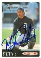 Miguel Eduardo Olivo Peña is a Dominican former professional baseball catcher. He bats and throws right-handed. He has played with seven Major League Baseball teams from 2002 to 2014.