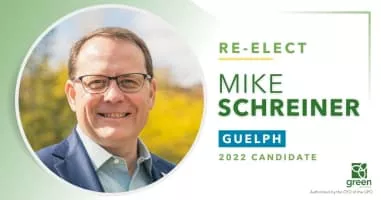 Mike Schreiner MPP is a Canadian politician who has served as the leader of the Green Party of Ontario since 2009. Schreiner sits as a member of Provincial Parliament, representing Guelph; his 2018 election made him the first and only Green Party member elected to the Legislative Assembly of Ontario.