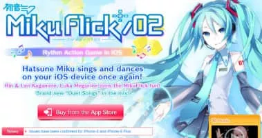 Miku Flick/02 was a 2012 rhythm game created by Sega and Crypton Future Media for the iOS operating systems iPhone, iPad and iPod Touch. The game was a sequel to Miku Flick, released earlier that year, and a spin off of the Hatsune Miku: Project DIVA series of Vocaloid rhythm games.