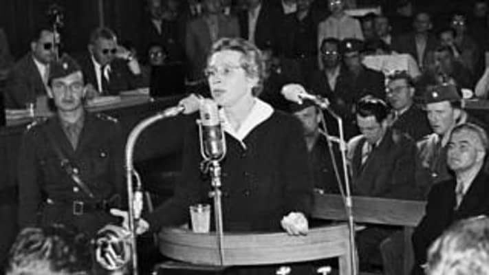 Milada Horáková was a Czech politician and a member of the underground resistance movement during World War II. She was a victim of judicial murder, convicted and executed by the Communist Party of Czechoslovakia on fabricated charges of conspiracy and treason.