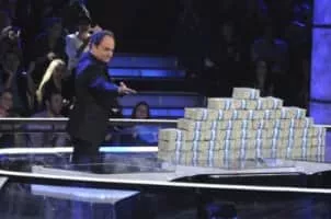 Two contestants. Seven questions. One million dollars. Throw in host Kevin Pollak and you have this big-money game show from the production company behind "Deal or No Deal." A team of two contestants is given bundles of cash totaling $1 million. The players then face seven multiple-choice questions, on which they must wager the money. All the money can be risked on one answer or spread across multiple answers. But any money wagered on an incorrect answer is lost as it falls through the money drop. The contestants get to keep any money that remains after all seven questions have been played. So it will take nerves of steel for a duo to walk away with the full million. … MORE