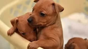 The Miniature Pinscher is a small breed of dog originating from Germany. The breed's earliest ancestors may have included the German Pinscher mixed with Italian greyhounds and dachshunds.