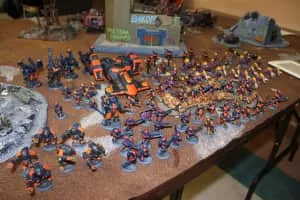 Miniature wargaming is a form of wargaming in which players enact battles between opposing military forces that are represented by miniature physical models.
