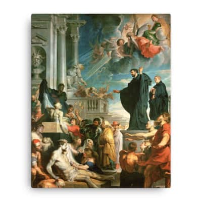 The Miracles of St. Francis Xavier is a large altarpiece painted by Peter Paul Rubens in 1617 or 1618. It was originally commissioned by the Jesuits in Antwerp for their church, now known as the St. Charles Borromeo Church. It is now in the Kunsthistorisches Museum in Vienna.