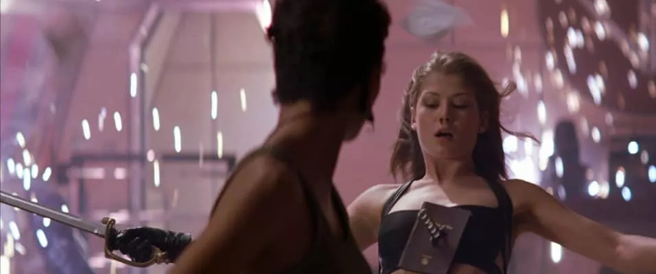 Miranda Frost (Rosamund Pike) is a cold, treacherous MI6 Agent; she falls in love with Colonel Moon when they compete for the Harvard Fencing Team. Moon later rigs her Olympic Gold Medal win by arranging for the true winner to overdose on steroids.Rosamund Pike