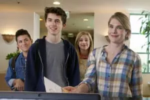 A high school English teacher (Lily Rabe) becomes a weekend chaperone for three students (Timothée Chalamet, Lili Reinhart) at a drama competition.