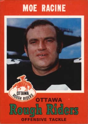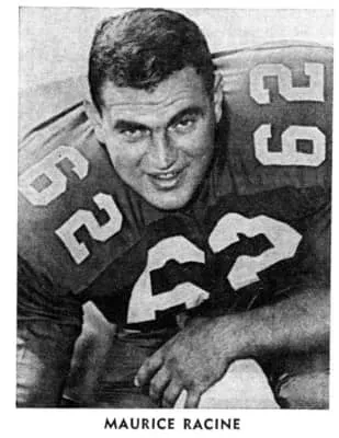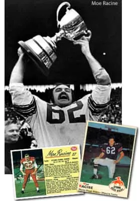 Maurice Joseph "Moe The Toe" Racine was a placekicker and offensive lineman for the Ottawa Rough Riders from 1958 to 1974 of the Canadian Football League. He was part of four Grey Cup winning teams with the Rough Riders and was inducted into the Canadian Football Hall of Fame in the Class of 2014.
