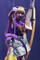 Moga Mogami is a Japanese idol. She is a former member of Dempagumi.inc and be nicknamed Moga-chan. Her catchphrase at Dempagumi.inc is "the golden heresy who runs in the universe", and her colour in charge is purple.