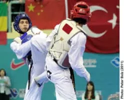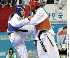 Mohammad Bagheri Motamed is a former Iranian professional taekwondo athlete. He won the gold medal in the featherweight division at the 2009 World Taekwondo Championships in ۱ Copenhagen, Denmark and the Olympic Silver Medal at the London 2012 Olympics. ۲