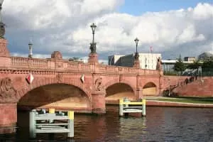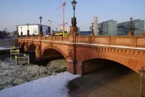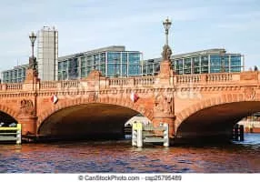 Moltke Bridge is a bridge over the Spree River in Berlin, Germany. Completed in 1891, it connects Alt-Moabit near the main railway station on the north bank to Willy-Brandt-Straße and the Chancellery on the south bank.