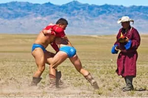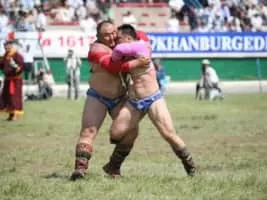Mongolian wrestling, known as Bökh, is the folk wrestling style of Mongols in Mongolia, Inner Mongolia and other regions where touching the ground with anything other than a foot loses the match. Bökh means "durability".