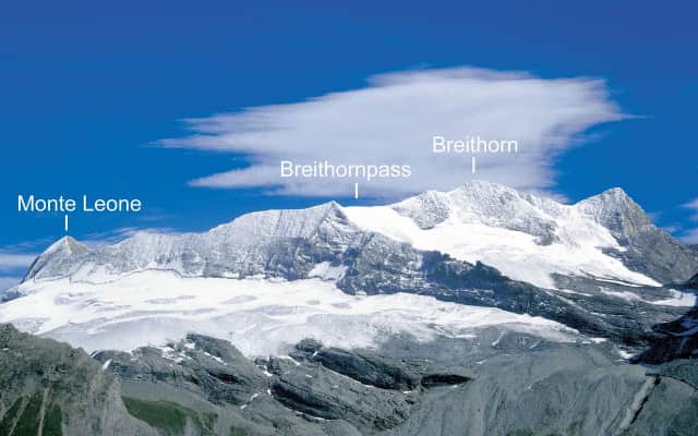 Monte Leone is the highest mountain of the Lepontine Alps and is located on the border between Switzerland and Italy. The mountain stands on the extreme west of the Lepontine Alps, a few kilometres east of Simplon Pass.