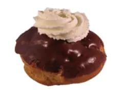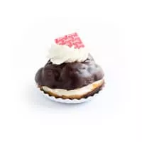 A moorkop is a pastry consisting of a profiterole filled with whipped cream. The top of the profiterole is glazed with white or dark chocolate. Often there is whipped cream on the top, with a slice of tangerine or a piece of pineapple.
